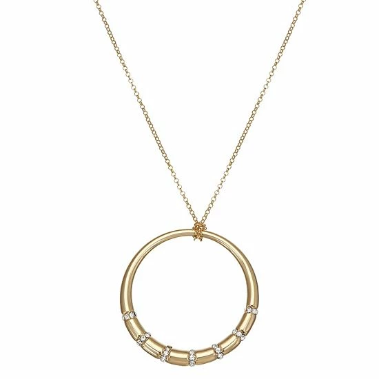 Adorn yourself with this beautiful and classy Nine West gold tone circle pendant necklace.
