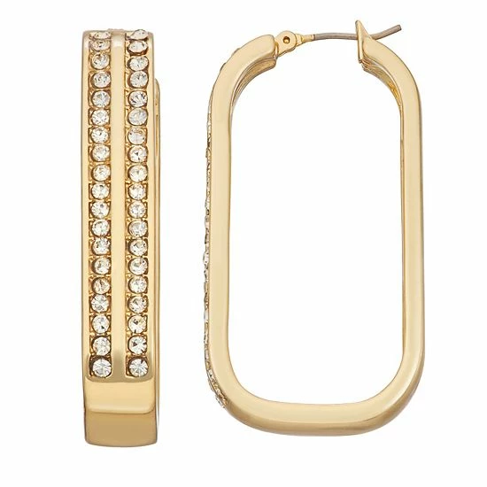 Dazzled with crystal accents, these Nine West gold tone drop hoop earrings will enhance your elegant attire.