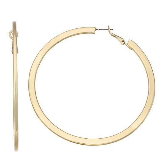 Style your look with these elegant gold tone large flat hoop earrings from Nine West, a timeless accessory that will accent any outfit.