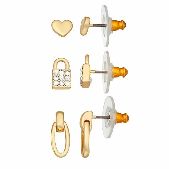 This Nine West Gold Tone Pave Earring Set offers multiple fun looks.