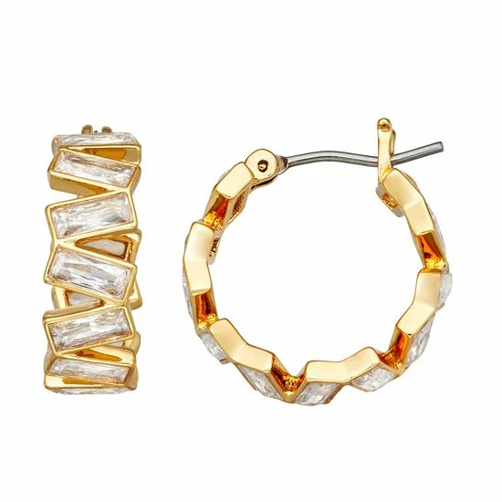 Stand out in elegant style with these Nine West gold tone simulated crystal hoop earrings.