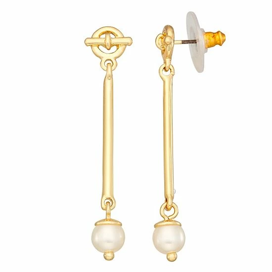 Drop these Nine West Gold Tone Simulated Pearl Linear Drop Earrings into your collection today.
