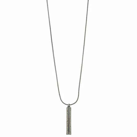 Pave-set crystals lend scintillating shine to this modern stick pendant from Nine West.