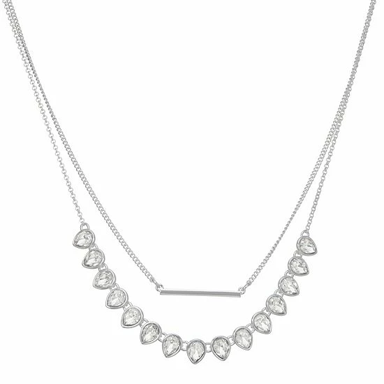 This Nine West Silver Tone 2 Row Bar Cry Necklace has double the lovely texture and charming shape.