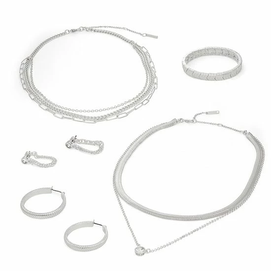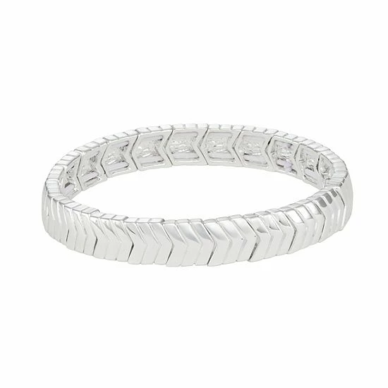Pull out all the stops with this Nine West Silver Tone Chevron Stretch Bracelet.