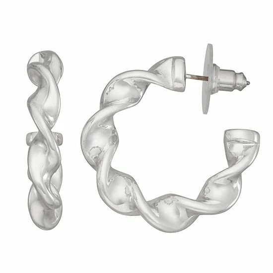 Finish off your look in eye-catching style in these unique twisted silver tone hoop earrings from Nine West.
