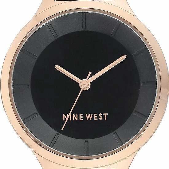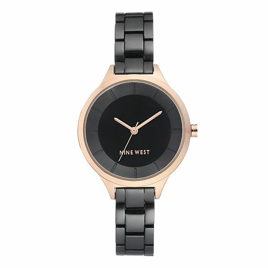 Featuring a rose gold-tone case and a polished black adjustable link bracelet, this women’s Nine West watch adds a chic finishing touch to your look.