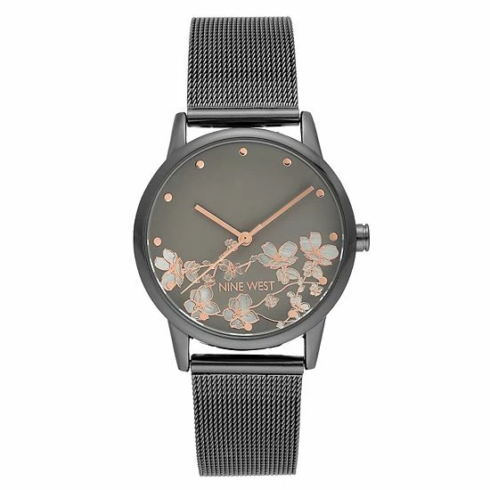 Featuring a rose gold-tone floral design on its dial, this women’s Nine West mesh bracelet watch is a chic complement to your wardrobe.