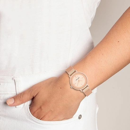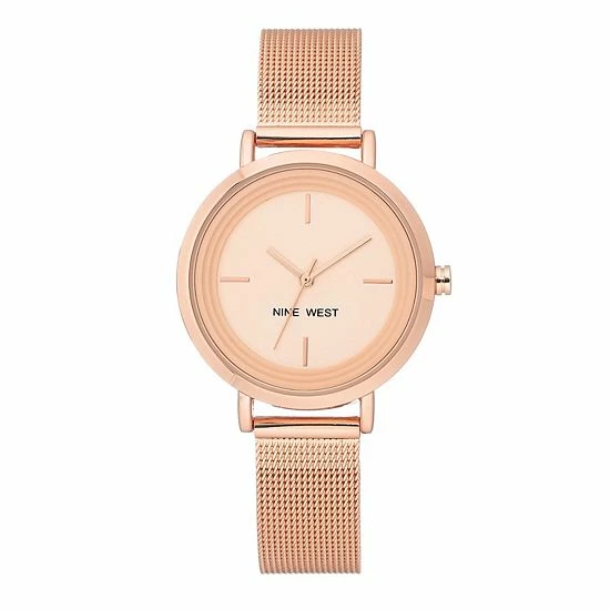 Featuring a pink dial and rose gold-tone mesh bracelet, this women’s Nine West watch adds a chic finishing touch to your look.