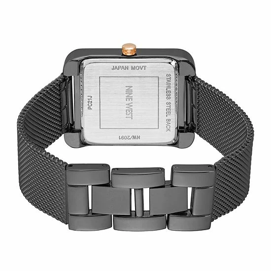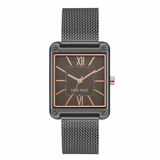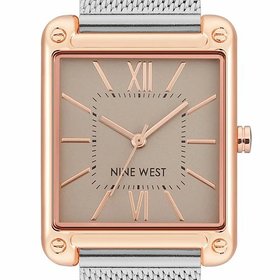 Featuring a silver-tone bracelet and dial accented with a gold-tone case, hands and Roman numerals, this Nine West watch completes your polished look.