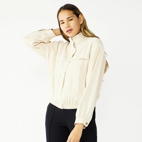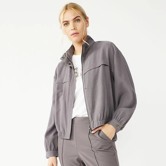 Update your spring wardrobe with this stylish petites’ bomber jacket from Nine West.