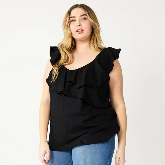Add a little sweetness to your wardrobe with this plus size women’s sweetheart neckline ruffled top from Nine West.