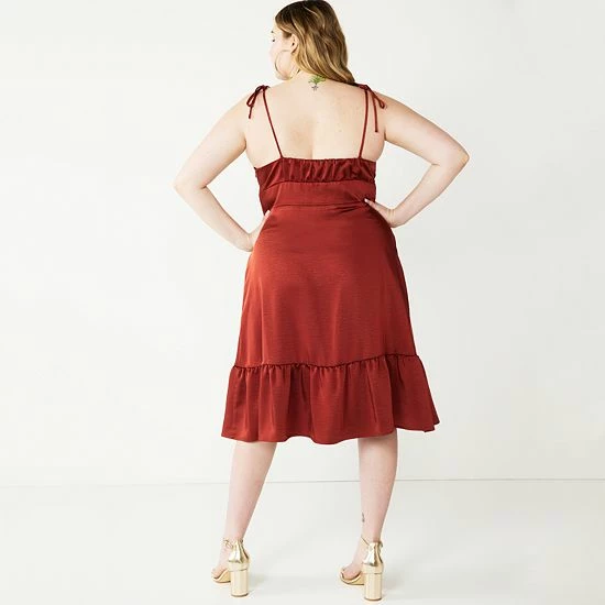Keep your look sweet and breezy in this women’s plus size fit-and-flare strappy midi dress from Nine West.