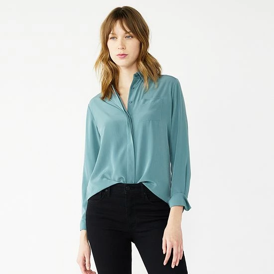 This women’s draped shirt from Nine West is designed with you in mind.