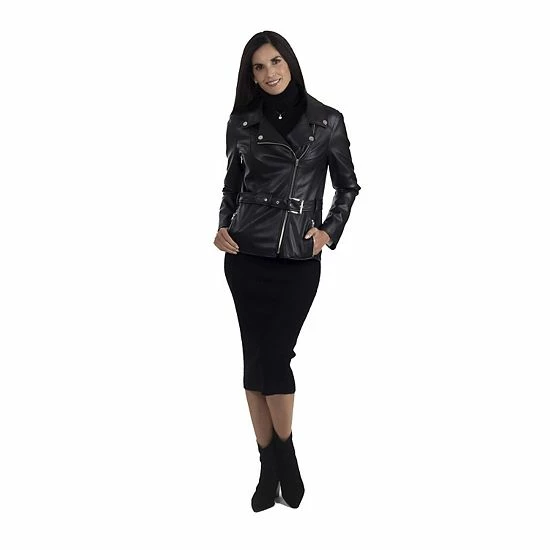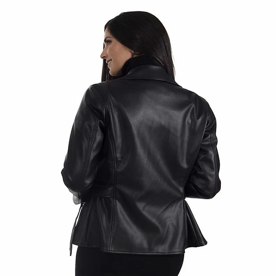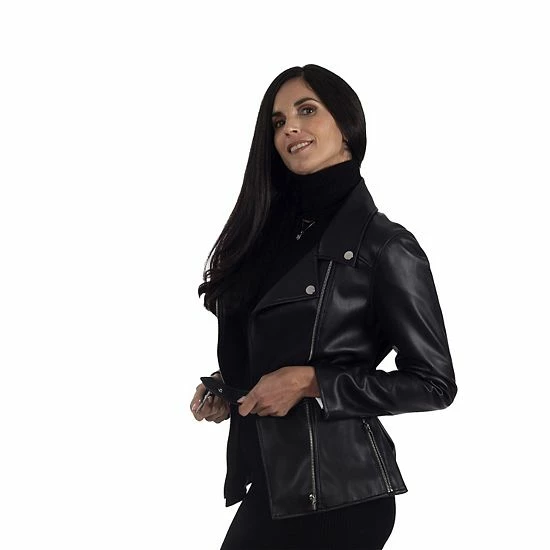 Add an edgy touch to any outfit with this women’s faux-leather biker jacket by Nine West.
