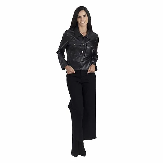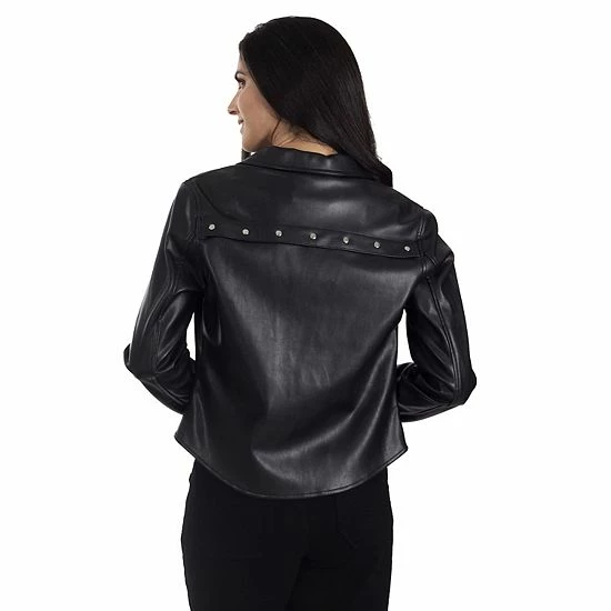 Add an edgy touch to any outfit with this women’s faux-leather trucker shacket by Nine West.