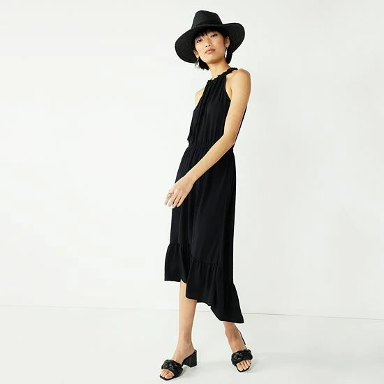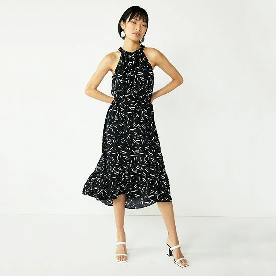A high-low hem adds a stylish look to this women’s Nine West midi dress.