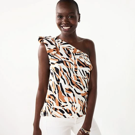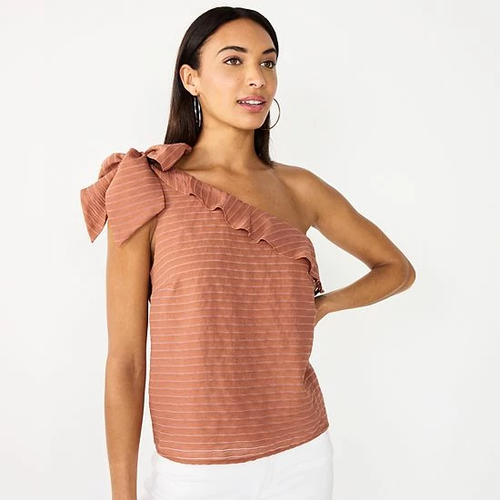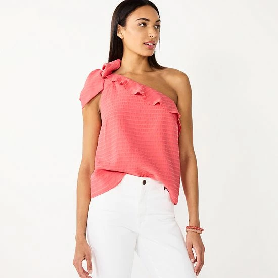 Refresh your warm weather wardrobe in eye-catching style with this women’s one-shoulder ruffle neck top from Nine West.