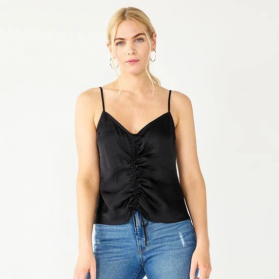 With its ruched, drawstring front and satin construction, this women’s Nine West V-neck tank top is an eye-catching addition to your warm weather wardrobe.