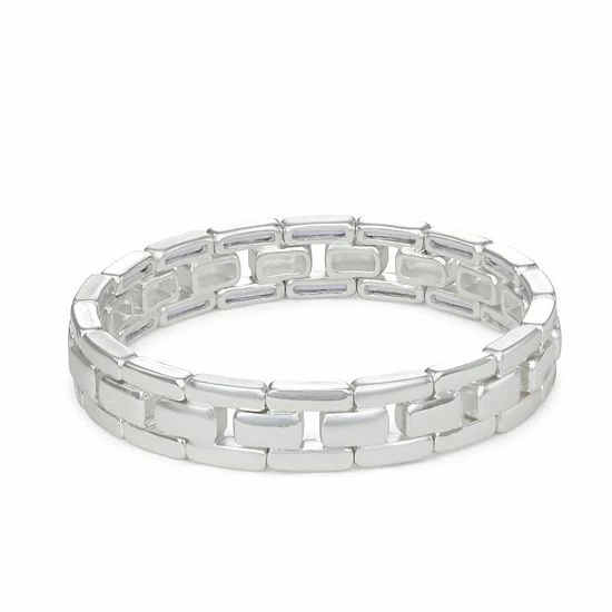 Pull on this Women’s Nine West Silver Tone Metal Chain Stretch Bracelet for the perfect finishing touch.