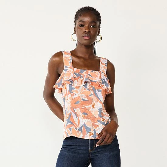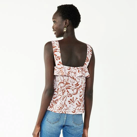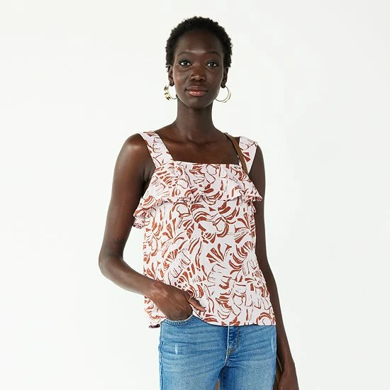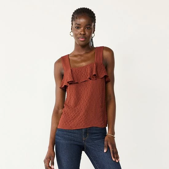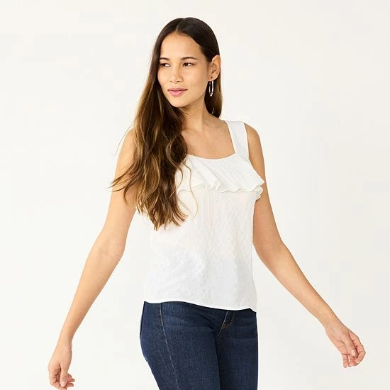 The lightweight seersucker construction and ruffled trim makes this women’s Nine West tank top a fashionable choice for warm weather.