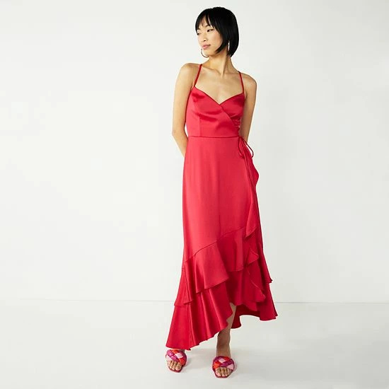 A strappy neckline and ruffle details give this women’s Nine West dress striking style.