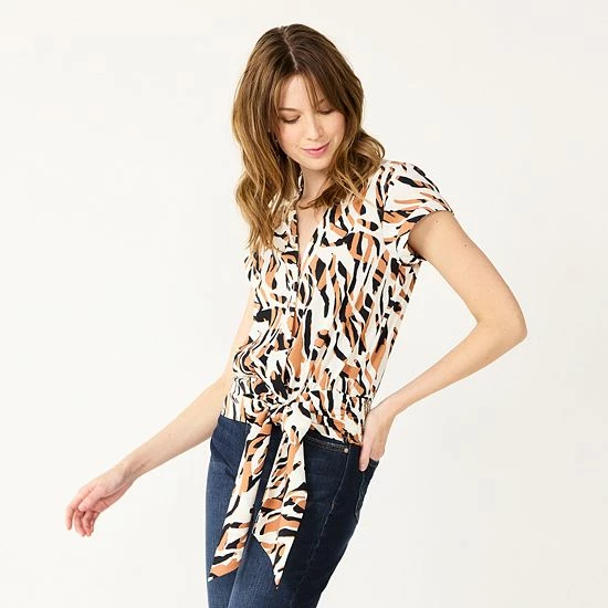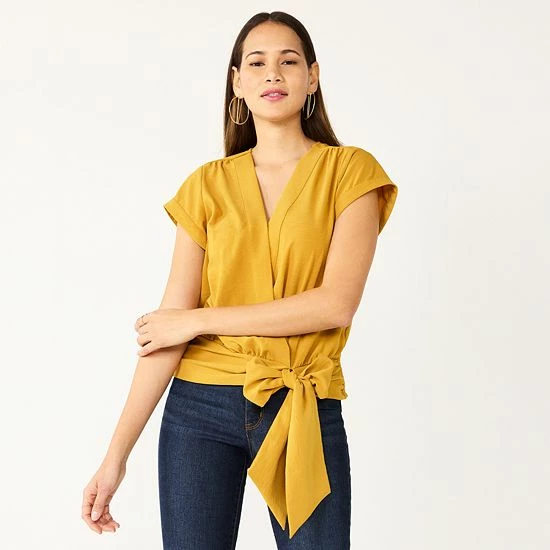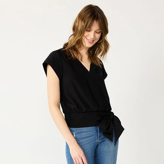 Keep your look fresh in this chic women’s tie waist wrap top from Nine West.