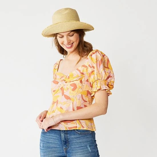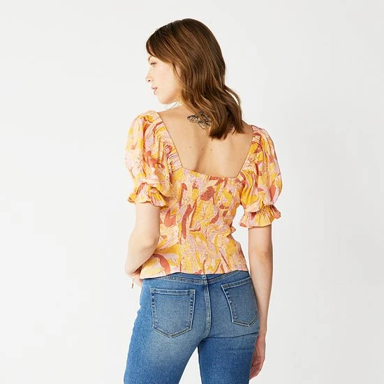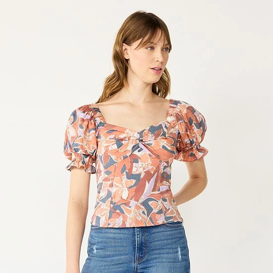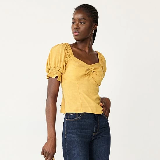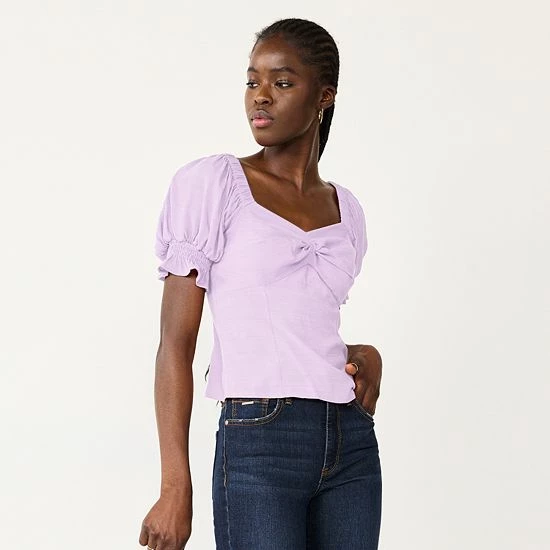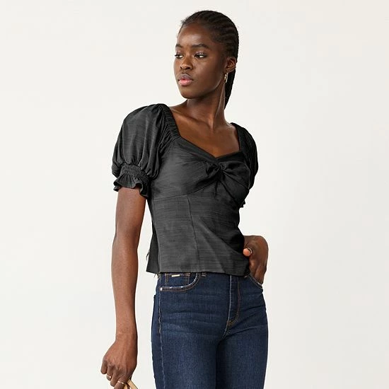Add a little sweetness to your wardrobe with this women’s twist front puff sleeve top from Nine West.